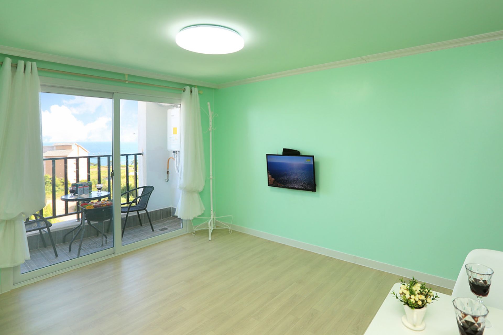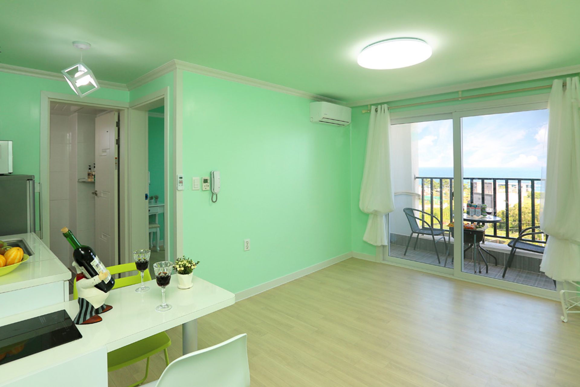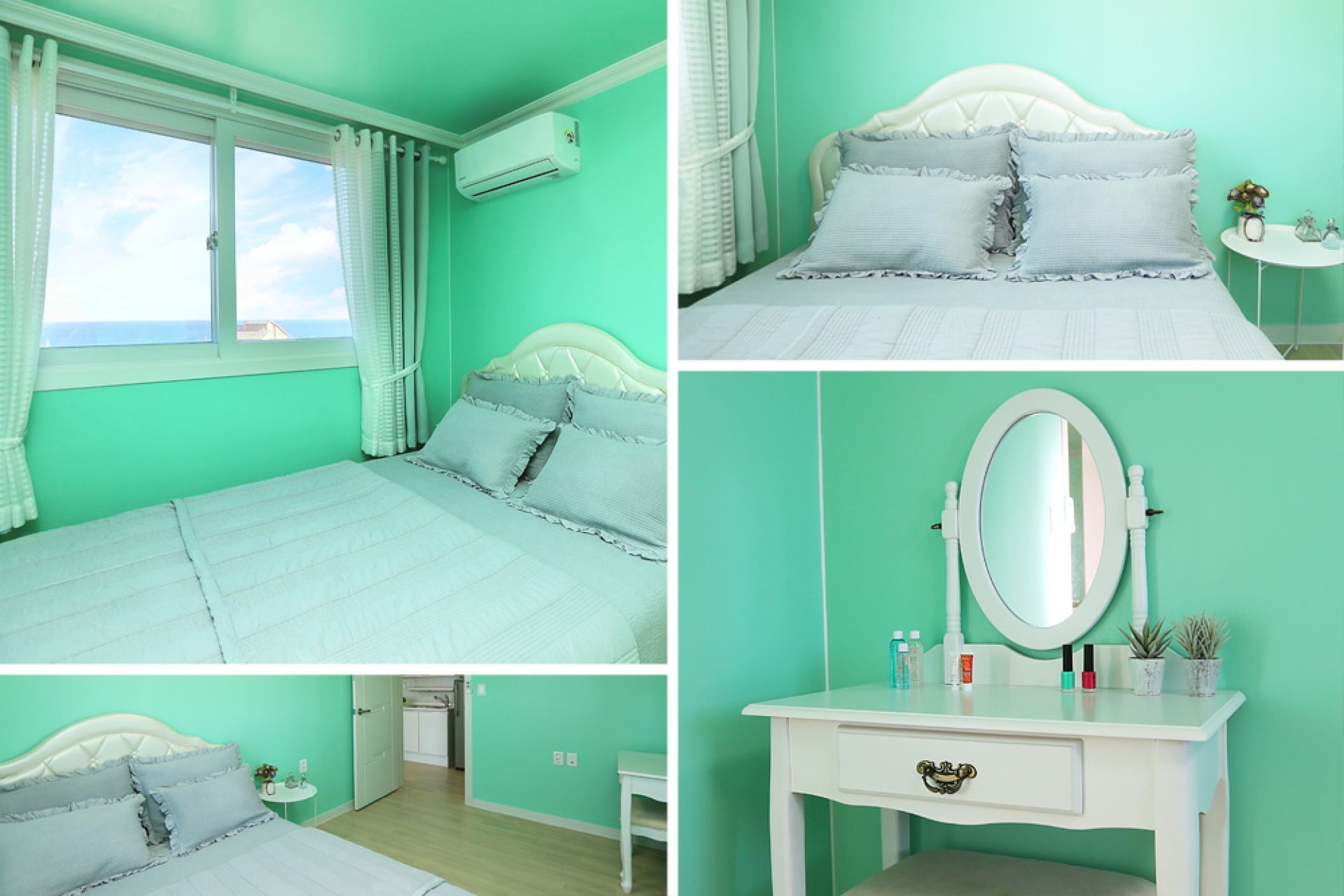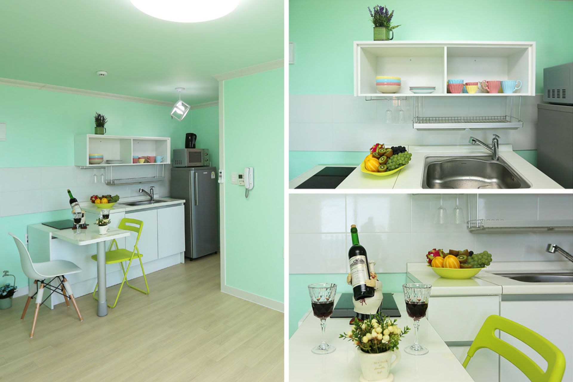 - 시설 : 에어컨, TV, 냉장고, 전자레인지, 커피포트, 주방도구일체, 헤어드라이어, 샴푸, 린스, 바디클린저 등 세면도구 일체